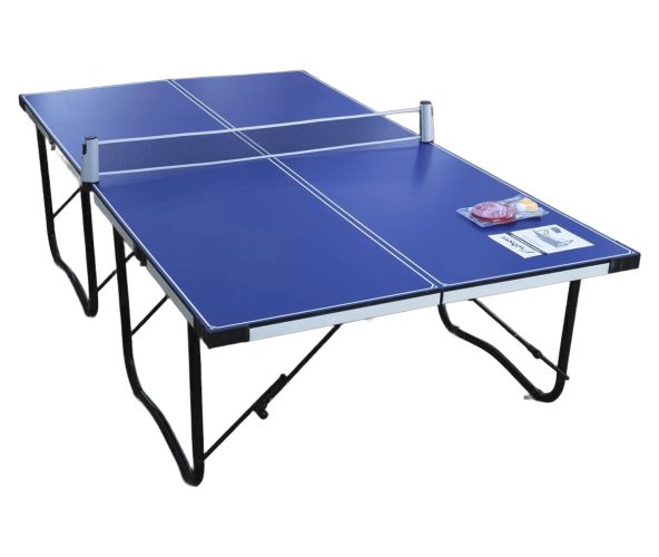 MESA PROFESIONAL DE FACIL TRANSPORTE CON MEDIDAS REGLAMENTARIOS DE 274CM X 153CM, CON EL ALTO DE 76 CM. MESA FABRICADA EN FIERRO CUADRADO DE 2” X 1”, PINTADO AL HORNO. TABLEROS EN MDF DE 15MM MASILLADO Y PINTADO EN AZUL CON BLANCO CON UNA PINTURA GLOSS.